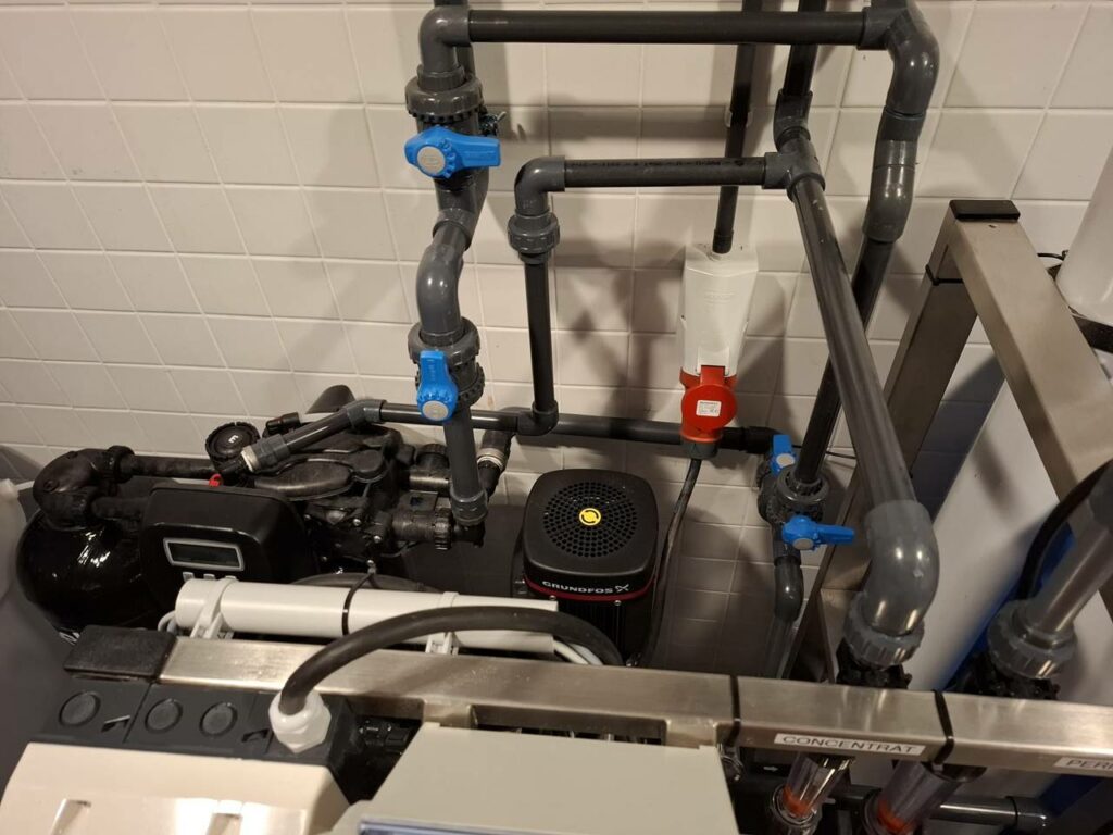 → Installation d’un adoucisseur performant, complété par un osmoseur dimensionné selon les besoins spécifiques du site